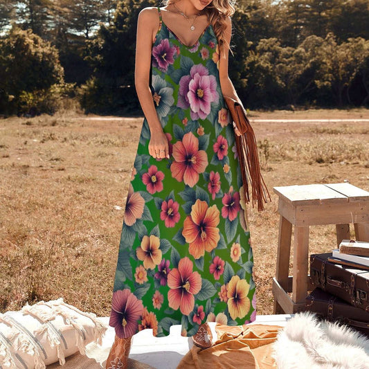 Sleeveless Boho Ankle Length Sling Maxi Dress Featuring Gorgeous Roses Print - Summer Outfit Essential