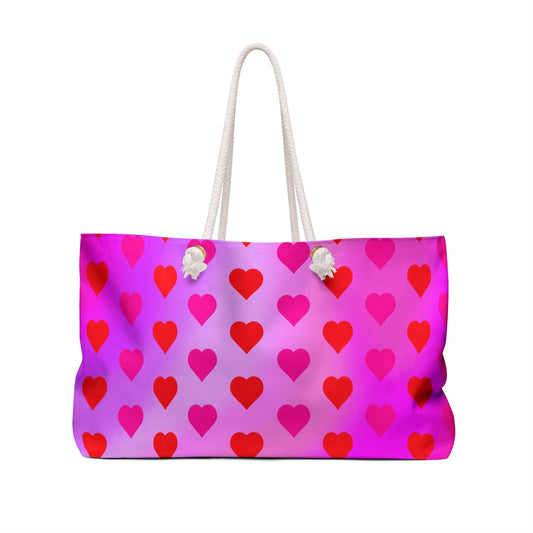 Chic Heart Pattern Weekender Bag, Perfect for Travel, Beach Days, Gym, Gifts for Her, Valentines Day Essentials, Love Theme