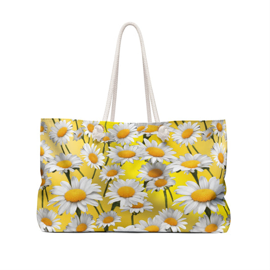 Daisies Weekender Tote Bag, Weekender Bag with Custom Print Design, Personalized Travel Duffel, Print on Demand Bag, Weekend Bag Design