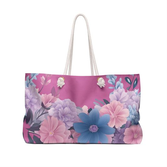 Weekender Bag with Pink & Blue Flowers, Floral Travel Tote, Overnight Bag, Getaway Duffel, Feminine Floral Gym Bag, Mothers Day Gift for Mom