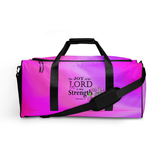 Sports Duffel Bag, Nehemiah 8:10 'The Lord is My Strength' Floral Design, Sports Gym Equipment Gear, Valentines Gift, Active Christian Women