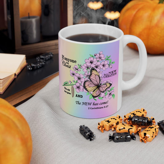 Ceramic Mug, Christian Home Decor, Gift for Nature Lover, Inspirational Coffee Cup, Transformation Kitchenware, Renewal Tea Mug, Caterpillar