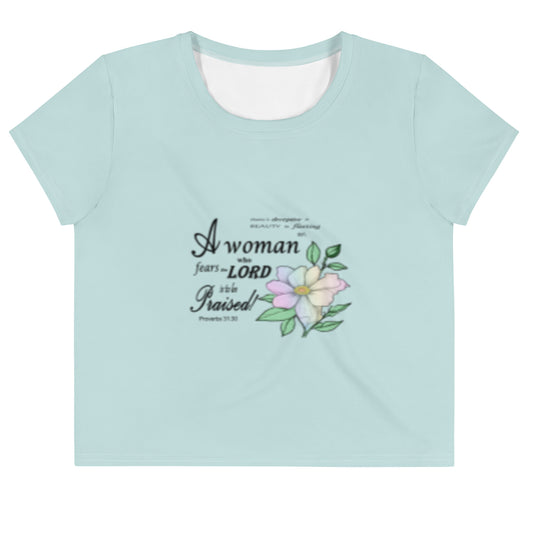 Aqua Crop Tee with Proverbs 31 Bible Verse - Inspirational Christian Women's Shirt