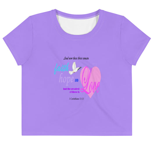 Faith Inspired Crop Tee For Women in Light Purple with Heart and Bible Verse - Trendy Graphic T-Shirt