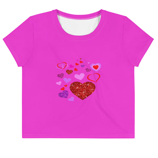 Trendy Heart Print Crop Top in Hot Pink Magenta - Women's Fashion Statement