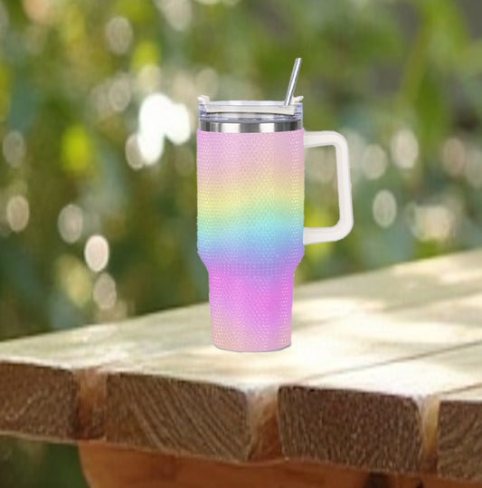 40oz Vibrant Pastel Rainbow Diamond Tumbler with Stainless Steel Straw – Gradient Luxe Hydration Cup