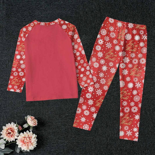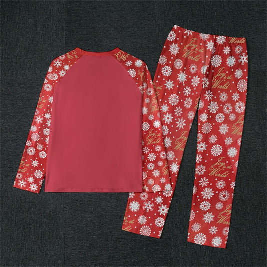Kid's Red Christmas Holiday Sleepwear Set, Festive 'Joy to the World' Quote - Matching family pajama outfit, long sleeves loungewear, 2 pc