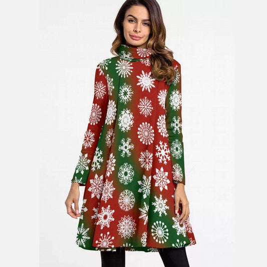 Red and Green High Neck Snowflake Mini Dress - Elegant Above the Knee Winter Design, Christmas Party Cocktail Dress