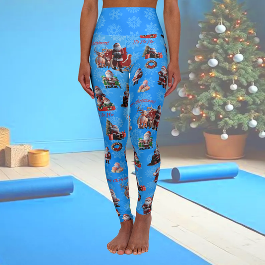 Yoga Leggings, Santa Claus Print, Christmas Workout Pants, Festive Athletic Wear, Holiday Fitness Apparel