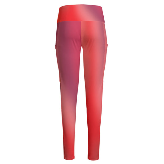 High Waist Yoga Leggings with Side Pockets Red Gradient – Satin Drill Fabric for Women’s Activewear