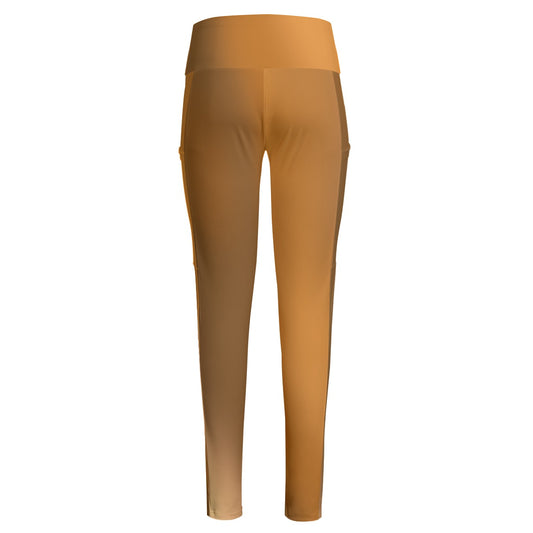 High Waist Yoga Leggings with Side Pockets Brown Gradient – Satin Drill Fabric for Women’s Activewear