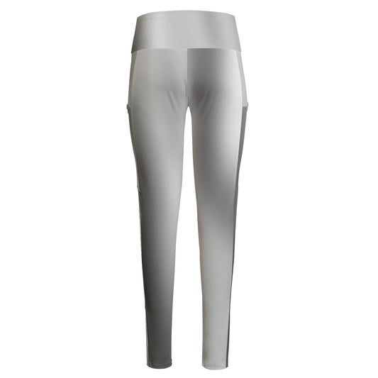 High Waist Yoga Leggings with Side Pockets Grey Gradient – Satin Drill Fabric for Women’s Activewear