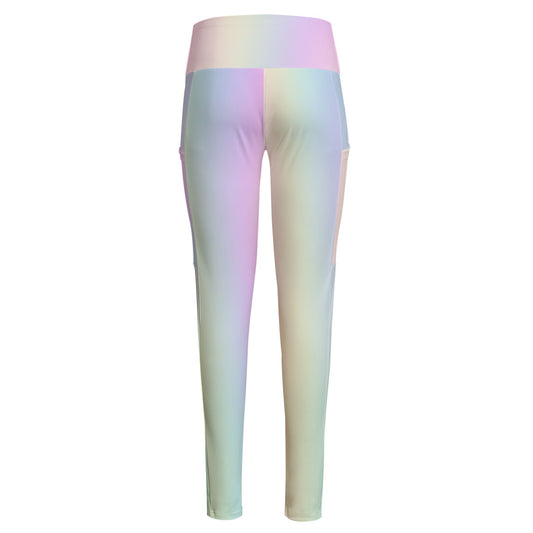 High Waist Yoga Leggings with Side Pockets Pastel Rainbow Gradient – Satin Drill Fabric for Women’s Activewear