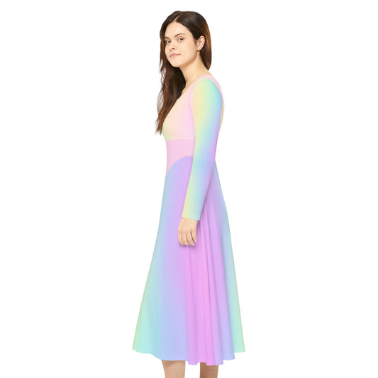 Pastel Rainbow Gradient Women's Dance Dress, Spring Easter or Mother's Day Outfit, Long Sleeve Ballet Costume, Flowy Skater Dress, Comfy