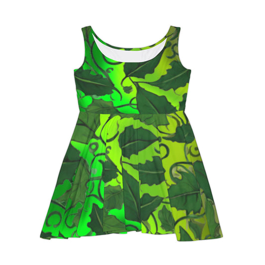 Green Leaves Skater Dress - Women's Summer Fashion - Eco-Friendly Fashion