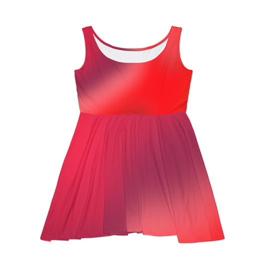 Red Gradient Bold Colored Skater Dress - Flowy & Flattering Fit, Perfect for any Occasion