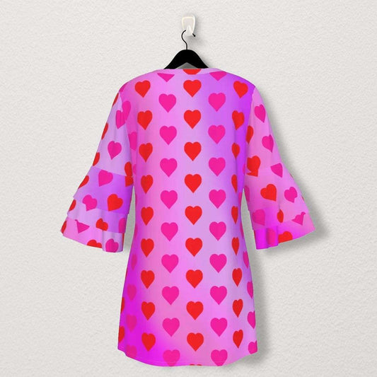 Adorable Hearts on a Pink Gradient Background Stacked Ruffle Sleeve Dress - Perfect for Little Girls' Spring & Summer Outfits!