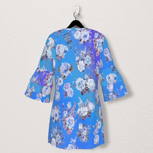 Blue Floral Stacked Ruffle Sleeve Dress - Flowy Summer Fashion for All Occasions - Perfect for Spring and Summer - Elegant and Stylish