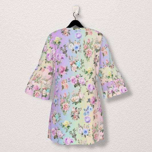 Stacked Ruffle Boho-Inspired Women's Sleeve Dress in Pastel Rainbow Floral Print | Perfect for Spring, Easter, or Mother's Day