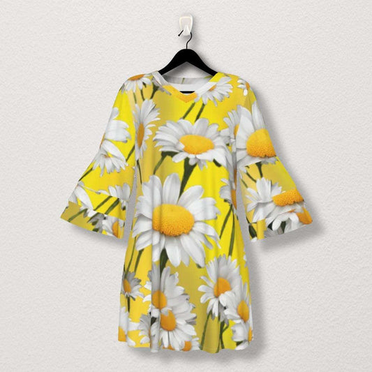 Yellow Daisy Stacked Ruffle Sleeve Dress - Perfect Summer Outfit - Adorable, Cute & Comfy