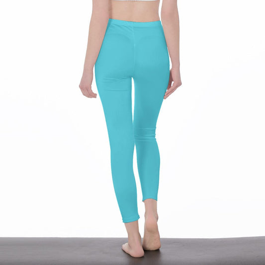 Turquoise Stylish Floral Decal Casual Solid Leggings for Women - Exercise Pants, Skinny Fit, Sporty, Yoga Pants - Comfy Everyday Wear