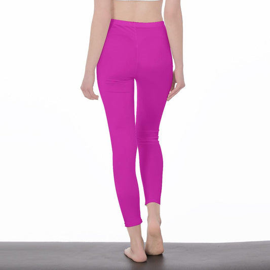Magenta/Hot Pink Stylish Floral Decal Casual Solid Leggings for Women - Exercise Pants, Skinny Fit, Sporty, Yoga Pants - Comfy Everyday Wear