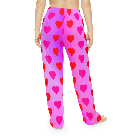 Pink Heart Print Women's Pajama Pants, Valentine's Day Lounge Sleepwear, Red Hearts on Pink Gradient, Cute PJ Bottoms, Cozy Nightwear
