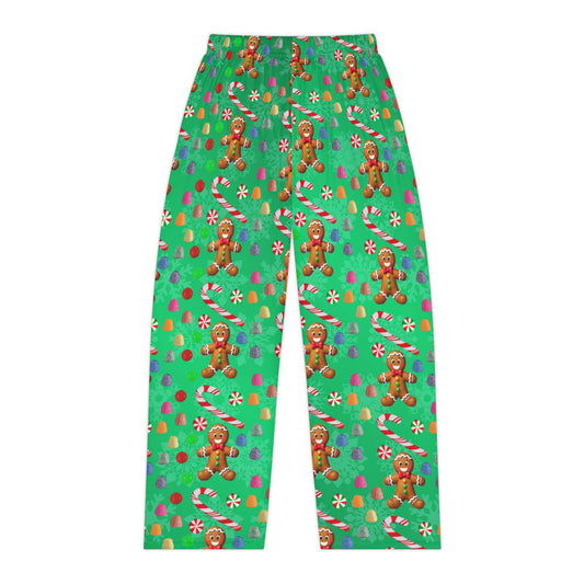 Green Christmas Gingerbread Man Women's Pajama Pants, Holiday Candy Sleepwear, Festive Lounge Bottoms, Xmas PJ Trousers, Winter Nightwear