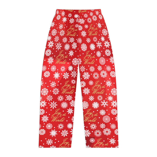 Red Joy to the World Women's Pajama Pants, Gold Elegant Lettering, Holiday Sleepwear, Christmas Lounge Pants, Red Snowflake PJ Bottoms