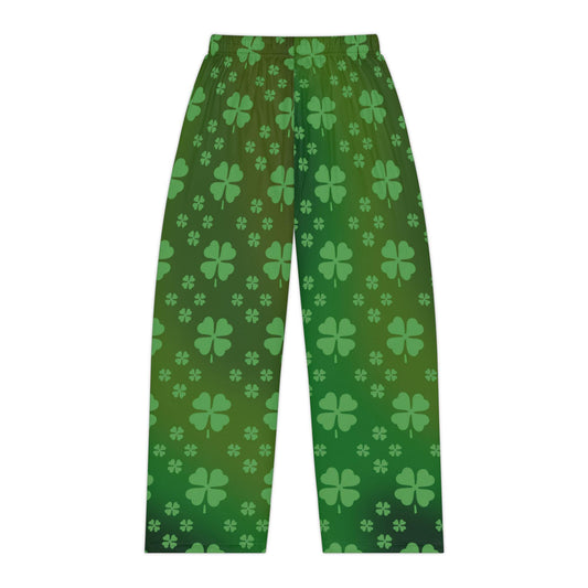Women's Pajama Pants, St. Patrick's Day Shamrock Pattern, Green Lucky Clovers, Irish Holiday Sleepwear, Lounge Bottoms, Comfy PJ Trousers