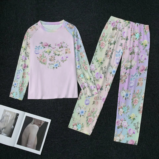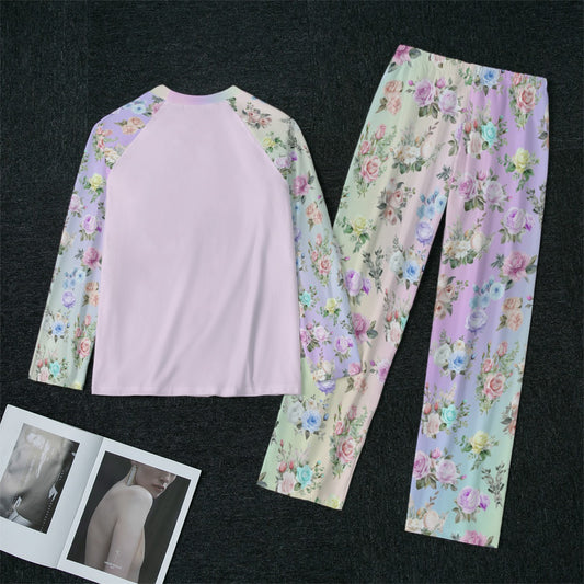 Pink Floral Raglan Sleeve Pajamas With Wide Ankles