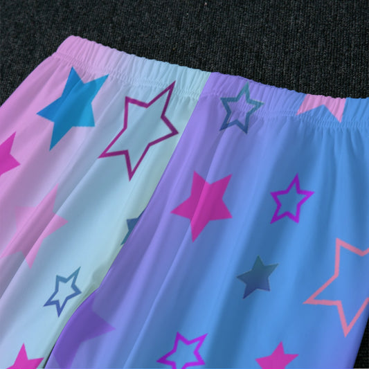 Celestial Dreams Pajama Set | Stars Pattern on Blue Pink Purple Ombre, Women's Raglan Sleeve With Wide Ankles loungewear, 2 pc