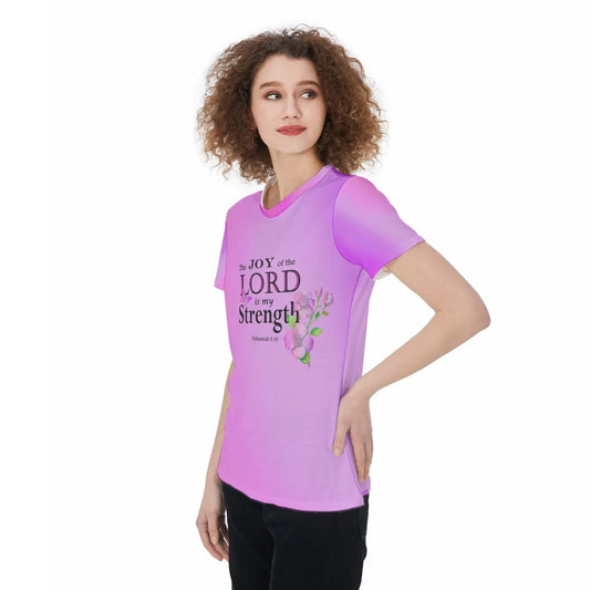 Christian Workout Tee, Joy and Strength Bible Verse Flower Design Activewear, Pink Athletic Top, Casual Fitness Sports Jersey T-shirt