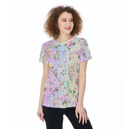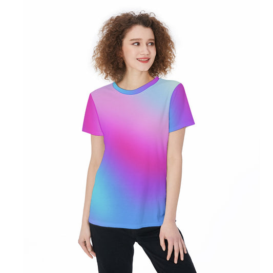 Stylish Women's Rainbow Gradient T-Shirt - Colorful All-Over Print Jersey Top, Demand Tees, Personalized Shirt, Custom Tee, Gift For He