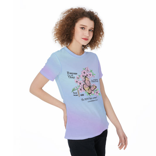 Women's Jersey, Caterpillar to Butterfly Bible Verse Design on Light Blue Gradient, Sports Shirt, Workout Top, Athletic Tee, Fitness