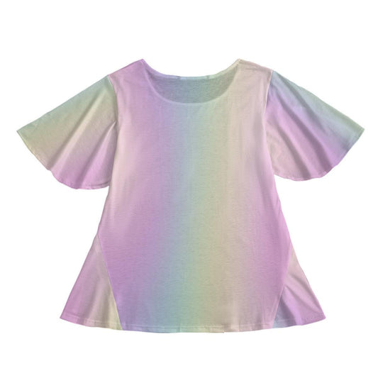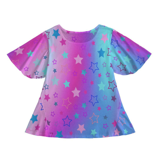 Pink Blue Purple Stars ColorfulRound Neck Short Sleeve Butterfly Sleeves Tunic Mini Dress For Women