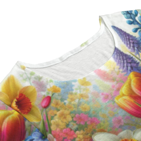 Vibrant Colorful Floral Garden Round Neck Short Sleeve Butterfly Sleeves Tunic Mini Dress – Perfect Summer Wear!