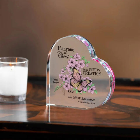 2 Corinthians 5:13 Heart Shaped Acrylic Desktop Ornament, New Creation Bible Verse Graphic, Christian Valentine's Gift for Her, Women of God