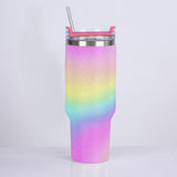 40oz Vibrant Pastel Rainbow Diamond Tumbler with Stainless Steel Straw – Gradient Luxe Hydration Cup