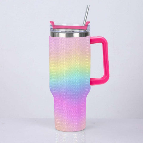 Brighten your day with the stunning 40 oz Diamond Cup, now in a dreamy pastel rainbow gradient. This premium stainless steel tumbler combines eye-catching design with exceptional functionality—perfect for bringing a pop of color to your daily hydration routine.
