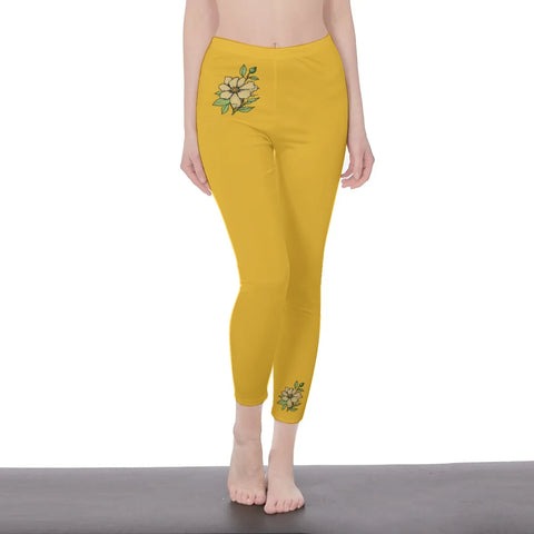 Yellow Stylish Floral Decal Solid Casual Leggings for Women - Versatile Cut & Sew Exercise, Skinny Fit, Sporty, Yoga Pants - Comfy Everyday Wear