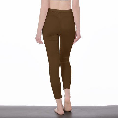 Brown Stylish Floral Decal Solid Casual Leggings for Women - Versatile Cut & Sew Exercise, Skinny Fit, Sporty, Yoga Pants - Comfy Everyday Wear