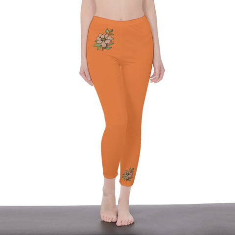 Orange Stylish Floral Decal Solid Casual Leggings for Women - Versatile Cut & Sew Exercise, Skinny Fit, Sporty, Yoga Pants - Comfy Everyday Wear