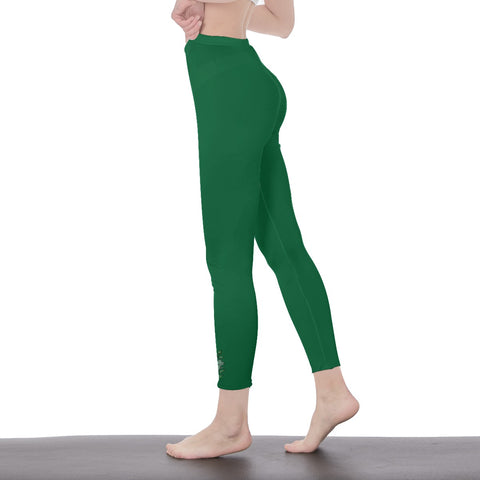 Green Stylish Floral Decal Solid Casual Leggings for Women - Versatile Cut & Sew Exercise, Skinny Fit, Sporty, Yoga Pants - Comfy Everyday Wear