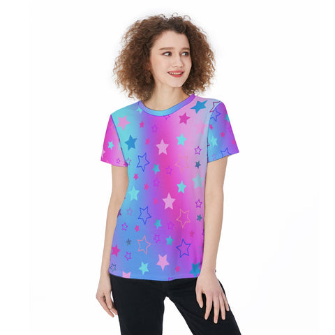 Lightweight Sports Jersey T-Shirt with Blue Purple Pink Starry All Over Print – Women’s Breathable Activewear Top