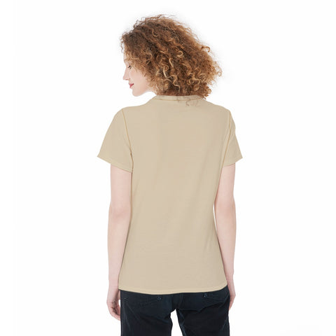 Lightweight Beige Sports Jersey T-Shirt with Flowers and Butterfly Graphic for Women – Breathable Activewear Top