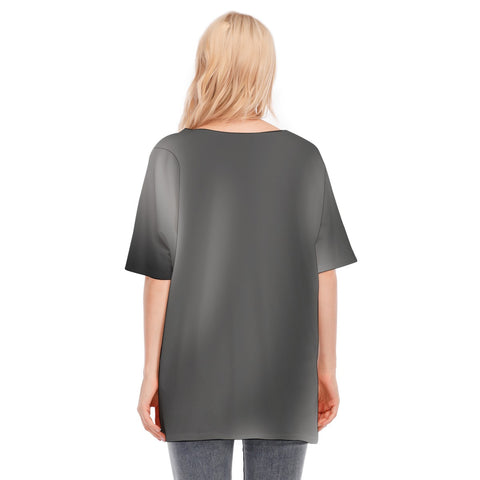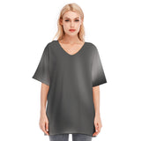Loose Fit V-Neck Bat Sleeve T-Shirt Blouse with All Over Black Gradient Design for Women