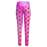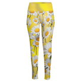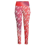 High Waist Yoga Leggings with Side Pockets Fall Leaves Pattern on a Brown Gradient Background – Satin Drill Fabric for Women’s Activewear