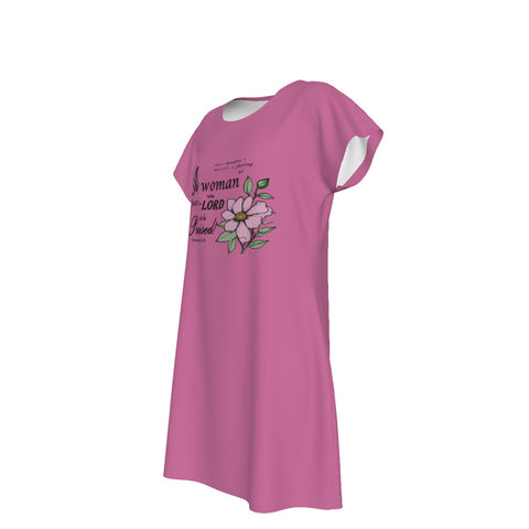 T-Shirt Bible Verse Floral Scripture Proverbs 31:30 Design - Oversized Short Sleeve T-shirt Dress For Women - Pink