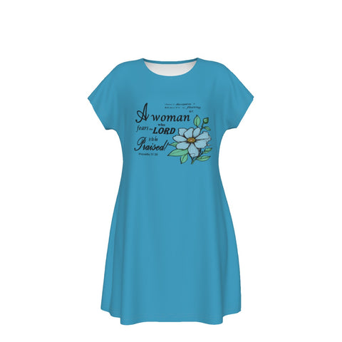 T-Shirt Bible Verse Floral Scripture Proverbs 31:30 Design - Oversized Short Sleeve T-shirt Dress For Women - Teal